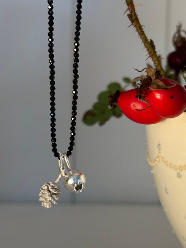 Nun ist auch die traumhaft glitzernde Spinellkette in sattem Schwarz im Shop erhältlich, die eine wunderschöne Kombinatonsmöglichkeit z.B. mit dem Hagebuttenanhänger bietet.