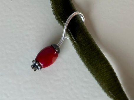 Hagebutten aus 925/000 Silber geschmiedet und mit einer großen Öse versehen, so dass man den Anhänger an vielen unterschiedlichen Ketten tragen kann.